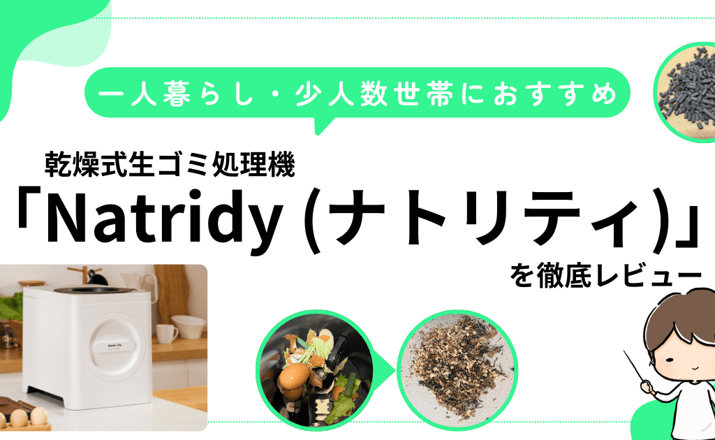 Natridyは、生ゴミに熱を加えて水分を飛ばす「乾燥式」生ゴミ処理機です。