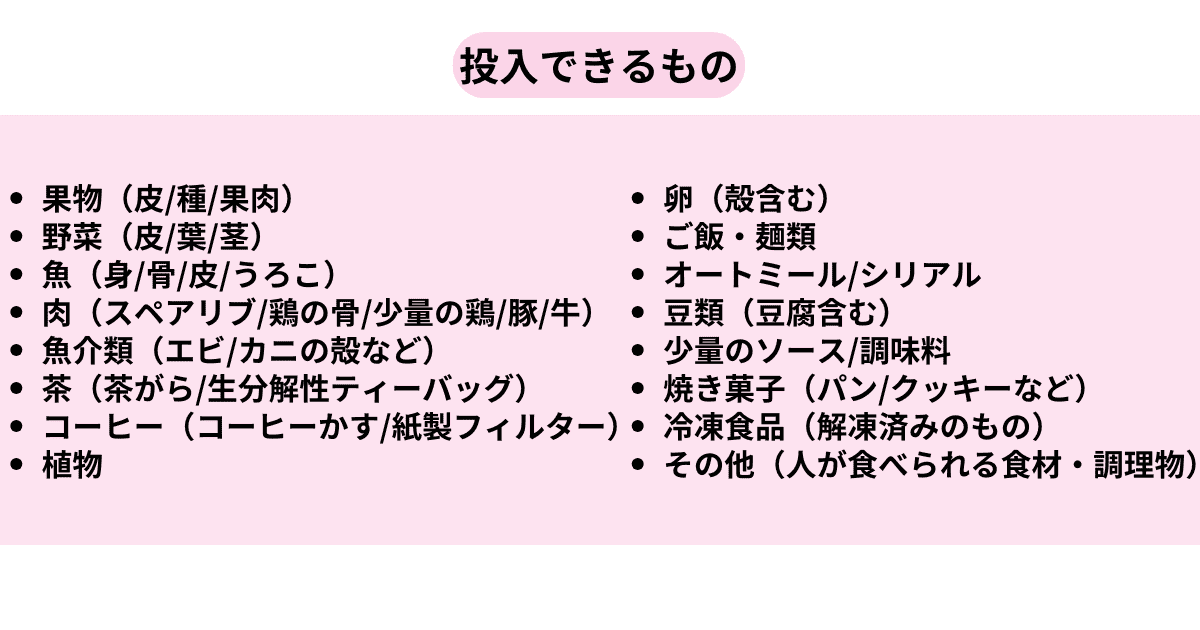 Natridy生ゴミ処理機には「投入できるもの」と「できないもの」があります。
