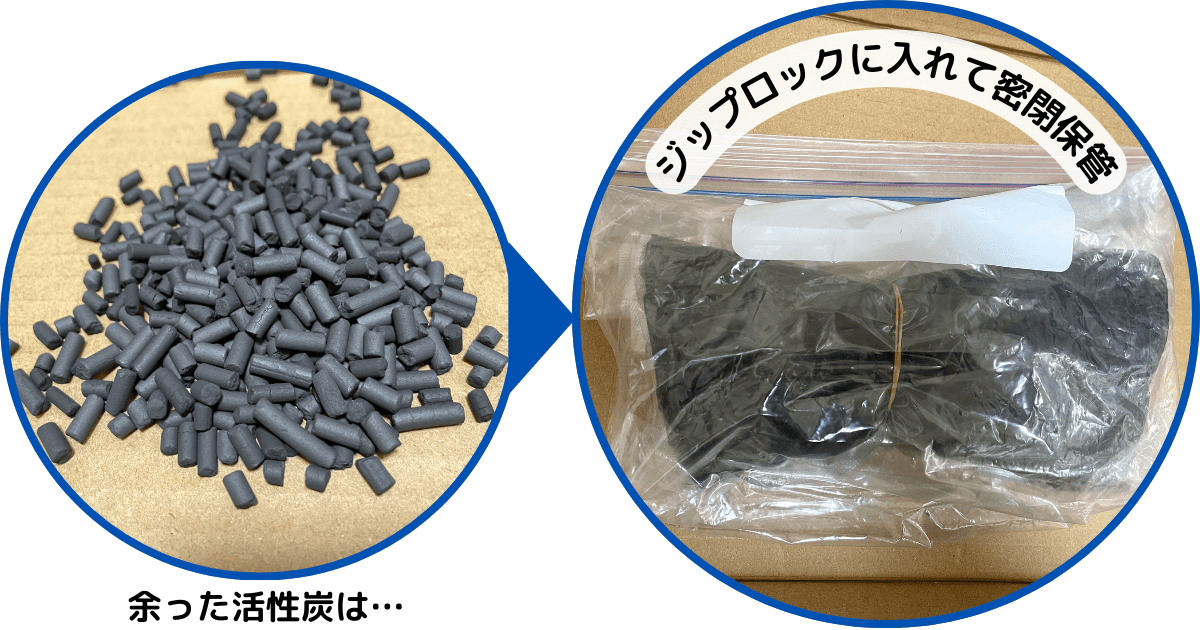 余った活性炭は、ジップロックに入れて密閉保管しましょう!